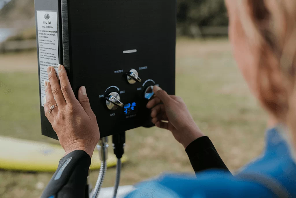 The Smarttek Black Portable Hot Water System is Easy to Set-up. All you need is the Smarttek Kit, Gas Bottle, A bucket of Water and away you go! Setting your temp is as just as easy. Find your perfect flow with the easy to use Temperature Dials